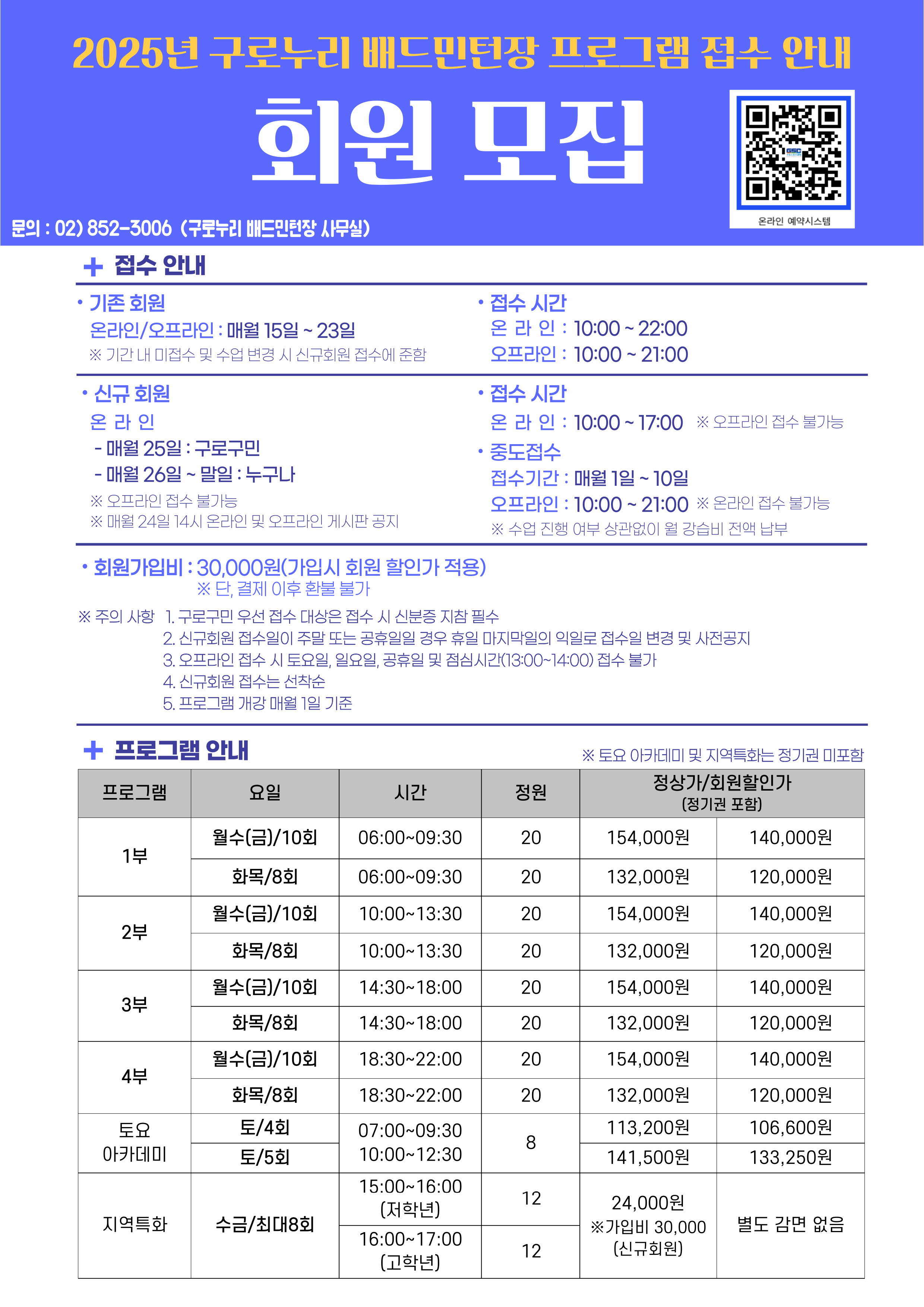 [구로누리배드민턴장] 2025년도 프로그램 운영 안내
